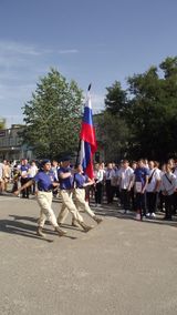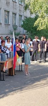 Право вынести знамя Российской Федерации на линейке было предоставлено обучающимся техникума, участникам Парада Победы на площади Павших Борцов, имеющим нагрудные знаки Министерства обороны Российской Федерации и медаль губернатора Волгоградской области: Листковой Марии, Карагодиной Дарье и Золотилову Дмитрию.