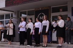 Преподаватель русского языка и литературы, победитель регионального конкурса «Педагогический дебют» Зарипова Ольга Александровна исполнила для всех присутствующих на линейке песню «Философы в 13 с половиной».