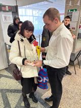 С самого утра молодые люди из актива техникума встречали и поздравяли с наступающим Международным днём всех женщин и девушек, дарили им прекрасные сладкие букеты. Все были приятно удивлены такому вниманию и заботе со стороны студентов.