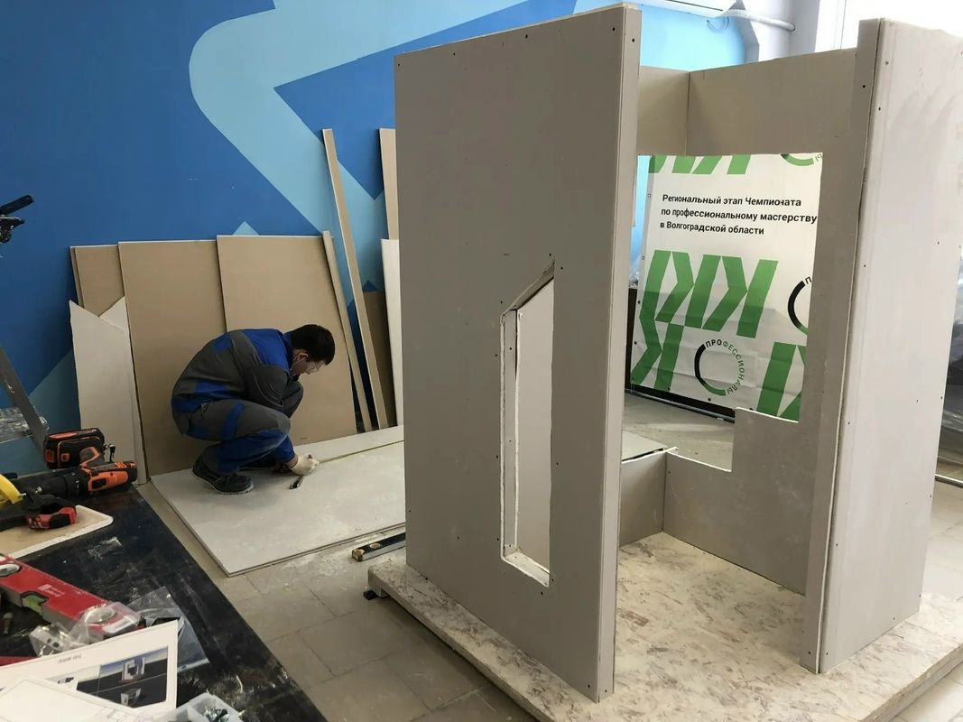 Сегодня, 9 февраля, завершился первый соревновательный день Регионального этапа Всероссийского чемпионата по профессиональному мастерству «Профессионалы» в Волгоградской области - 2026 по компетенции Сухое строительство и штукатурные работы.