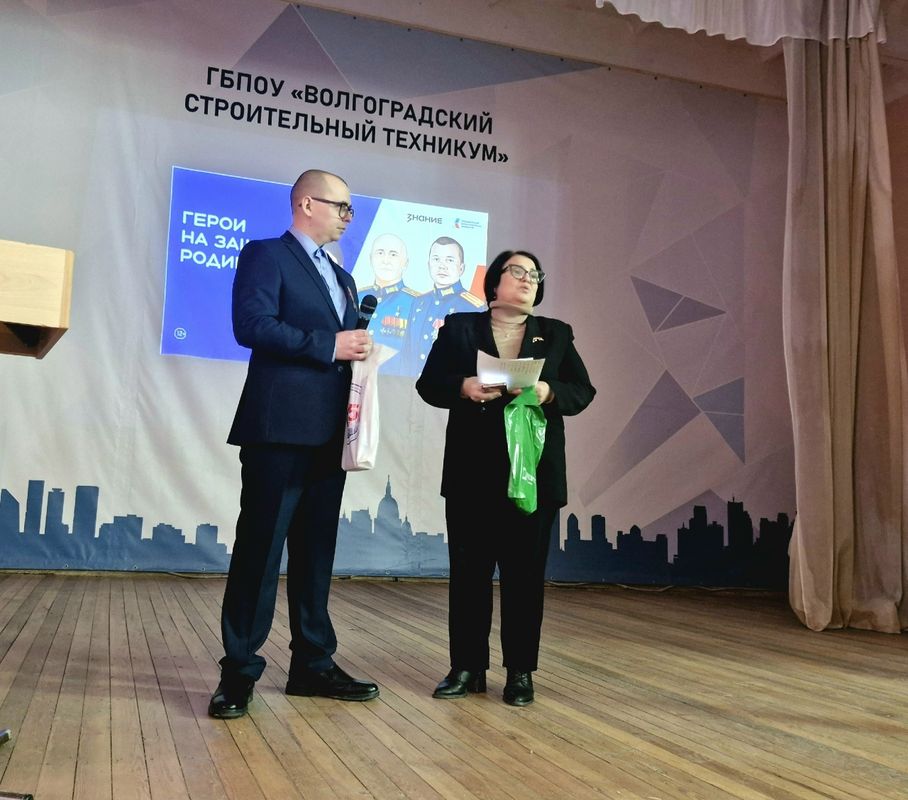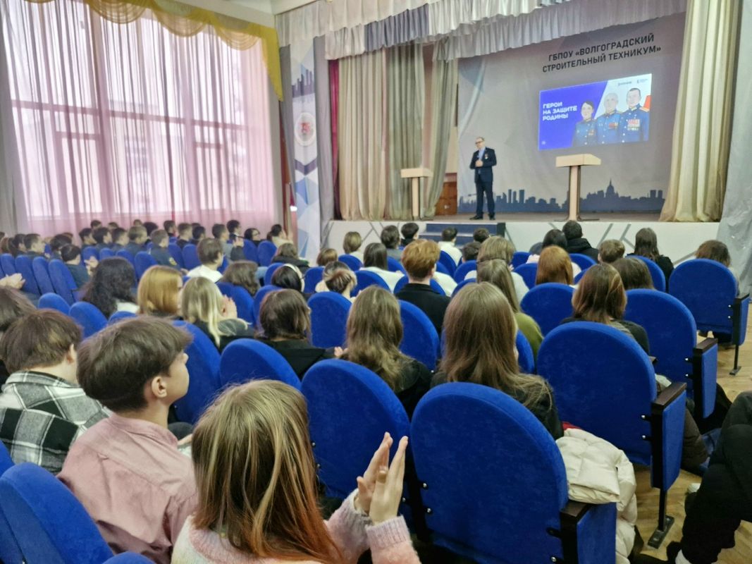Сегодня в стенах Волгоградского строительного техникума состоялась встреча-беседа с участником специальной военной операции, лектором Российского общества "Знание" Алексеем Басаловым, в которой приняли участие обучающиеся первых курсов и преподаватели техникума.
