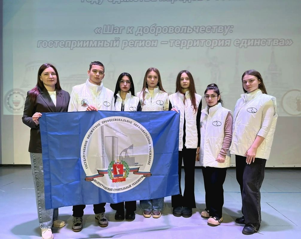 Активисты Волгоградского строительного техникума совместно с советником директора по воспитанию Иовковой Е.А. стали участниками V волонтёрского форума "Шаг к добровольчеству: гостеприимный регион – территория единства".