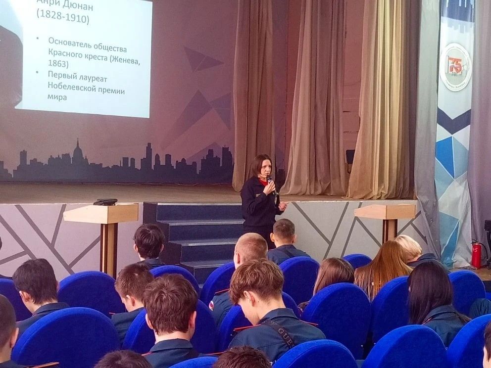 Ребята узнали об истоках и причинах создания Международной организации гражданской обороны, общества Красный Крест, о Женевских конвенциях и их значимости и применении в международном гуманитарном праве. Было рассказано и о составе сил и средств гражданской обороны в Российской Федерации, руководстве и координирующих органах.