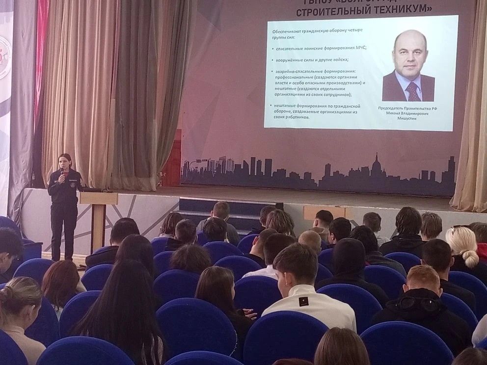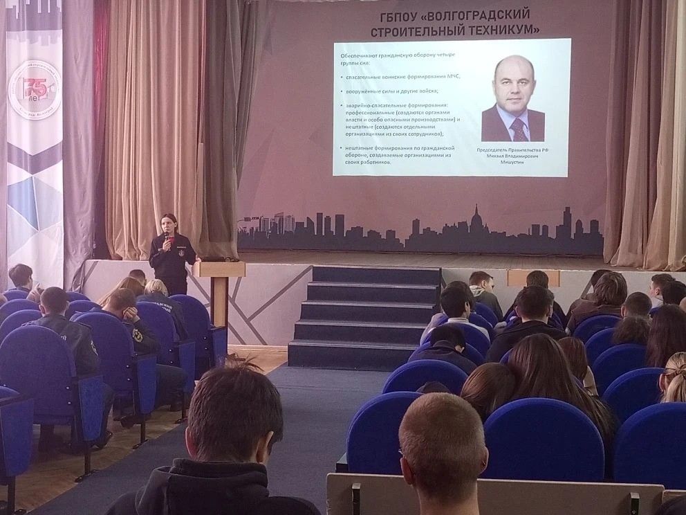 В рамках проведения Всероссийского открытого урока культуры безопасности, приуроченного ко Дню гражданской обороны Российской Федерации заместитель начальника оперативного отдела ГКУ Служба спасения Наталия Александровна Пшеничкина провела беседу с обучающимися ГБПОУ «Волгоградский строительный техникум» на тему организации гражданской обороны в России и мире.