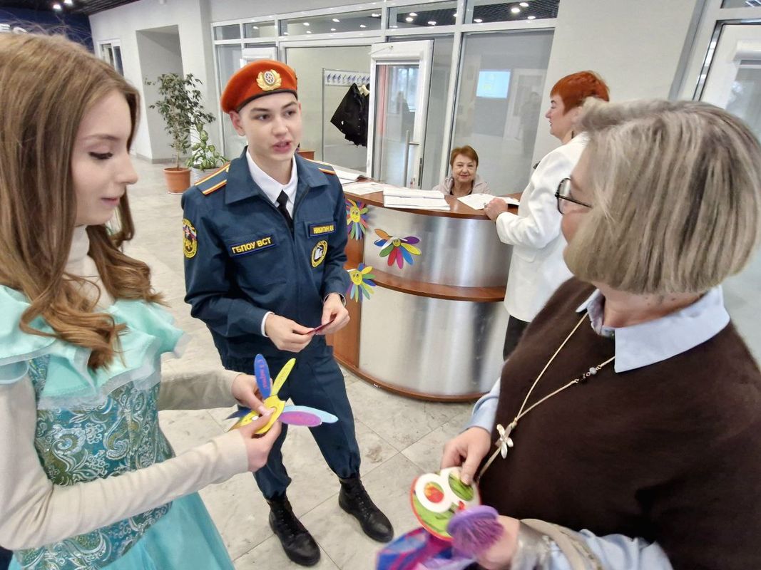 С самого утра наша Весна и молодые люди специальности Пожарная безопасность встречали и поздравяли с наступающим Международным днем всех женщин и девушек, дарили им открытки с прекрасными пожеланиями. Все были приятно удивлены такому вниманию и заботе со стороны студентов.