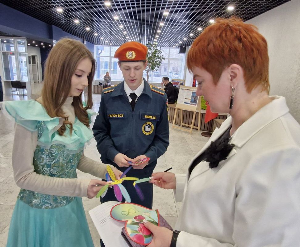 Актовый зал техникума в предпраздничный день был наполнен атмосферой весеннего настроения, улыбками и радостью. Директор техникума Галина Артуровна Голикова поздравила всех присутствующих с наступающим праздником Весны, пожелав здоровья, мира и благополучия.