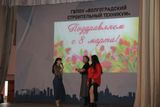 8 марта – Международный женский день, это время, когда прекрасная половина человечества принимает подарки и пожелания в свой адрес. Этому первому весеннему празднику добра, света, жизни и любви и был посвящён праздничный концерт, который состоялся 6 марта в Волгоградском строительном техникуме.