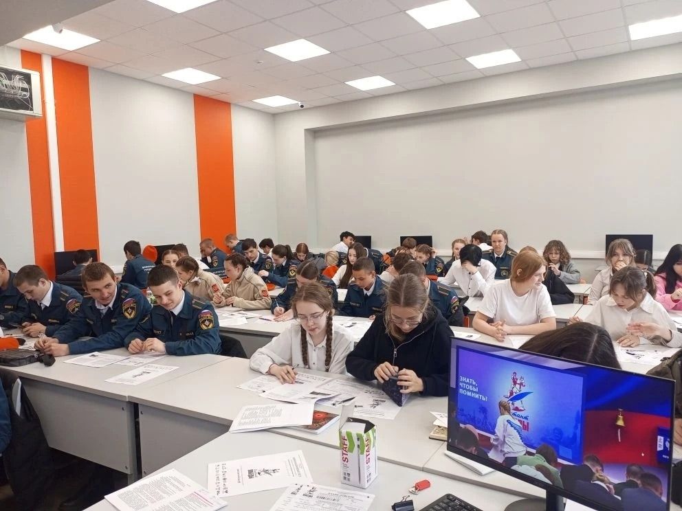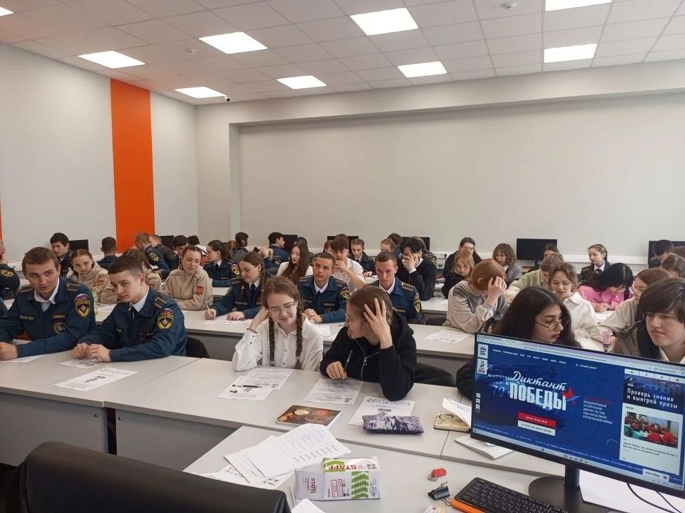 За 45 минут обучающиеся специальностей Пожарная безопасность и Архитектура ответили на вопросы, посвященные двум значимым датам: 85-летию начала Великой Отечественной войны и 130-летию со дня рождения маршала Советского Союза Георгия Константиновича Жукова. Отдельный блок вопросов, был посвящен героям и событиям специальной военной операции, подчеркивая связь поколений и преемственность ратных традиций.
