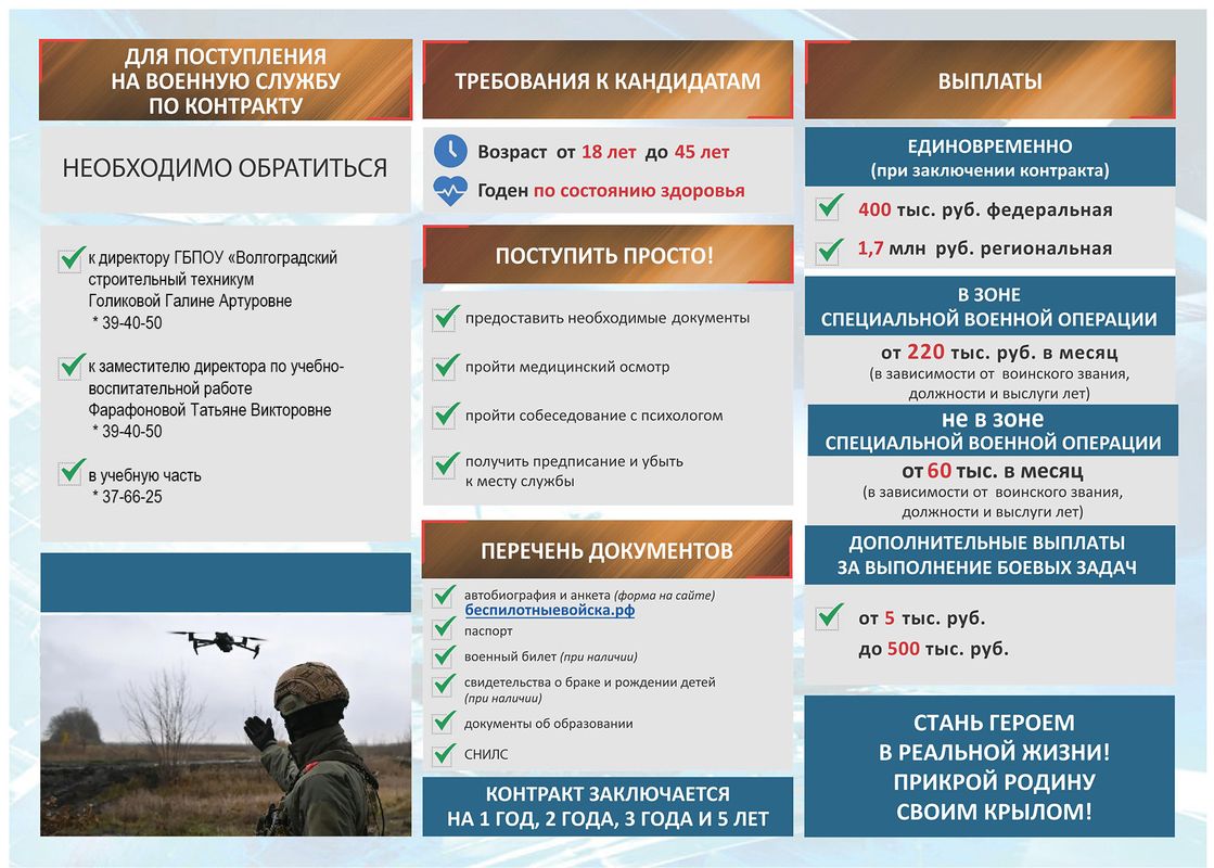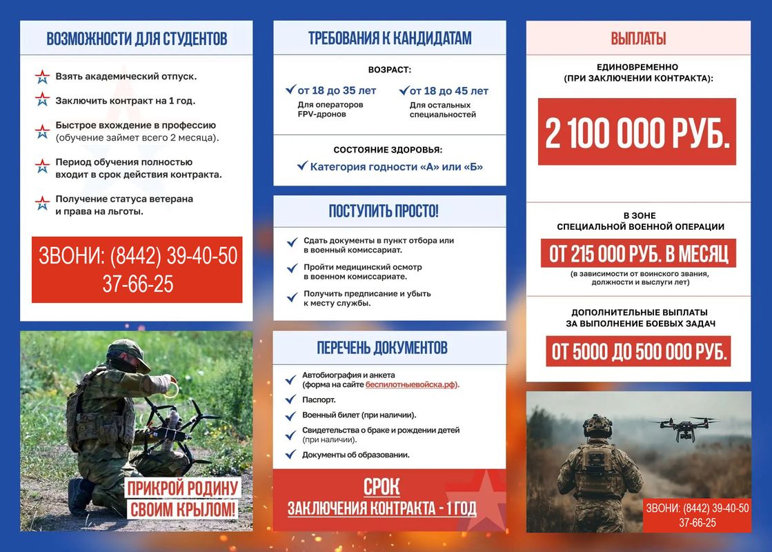Волгоградцы, поступающие в подразделения войск беспилотных систем, гарантированно получат максимальную выплату — 2,1 млн рублей