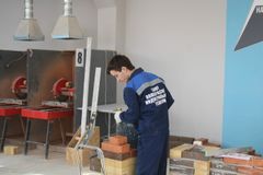 Участники компетенции "Кирпичная кладка" закончили выполнение модулей Б - кладка столбов с архитектурным оформлением, и Г - лицевая сложная кладка с орнаментом и архитектурными элементами криволинейного очертания.